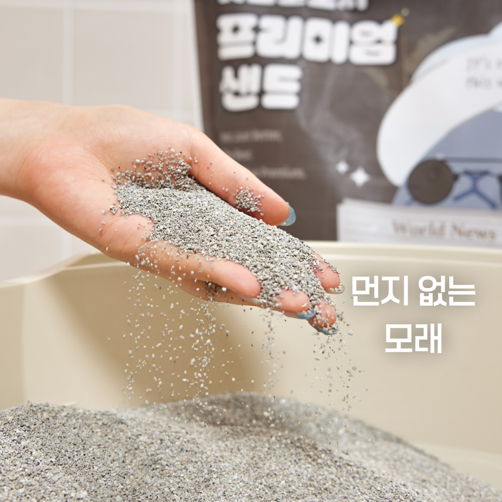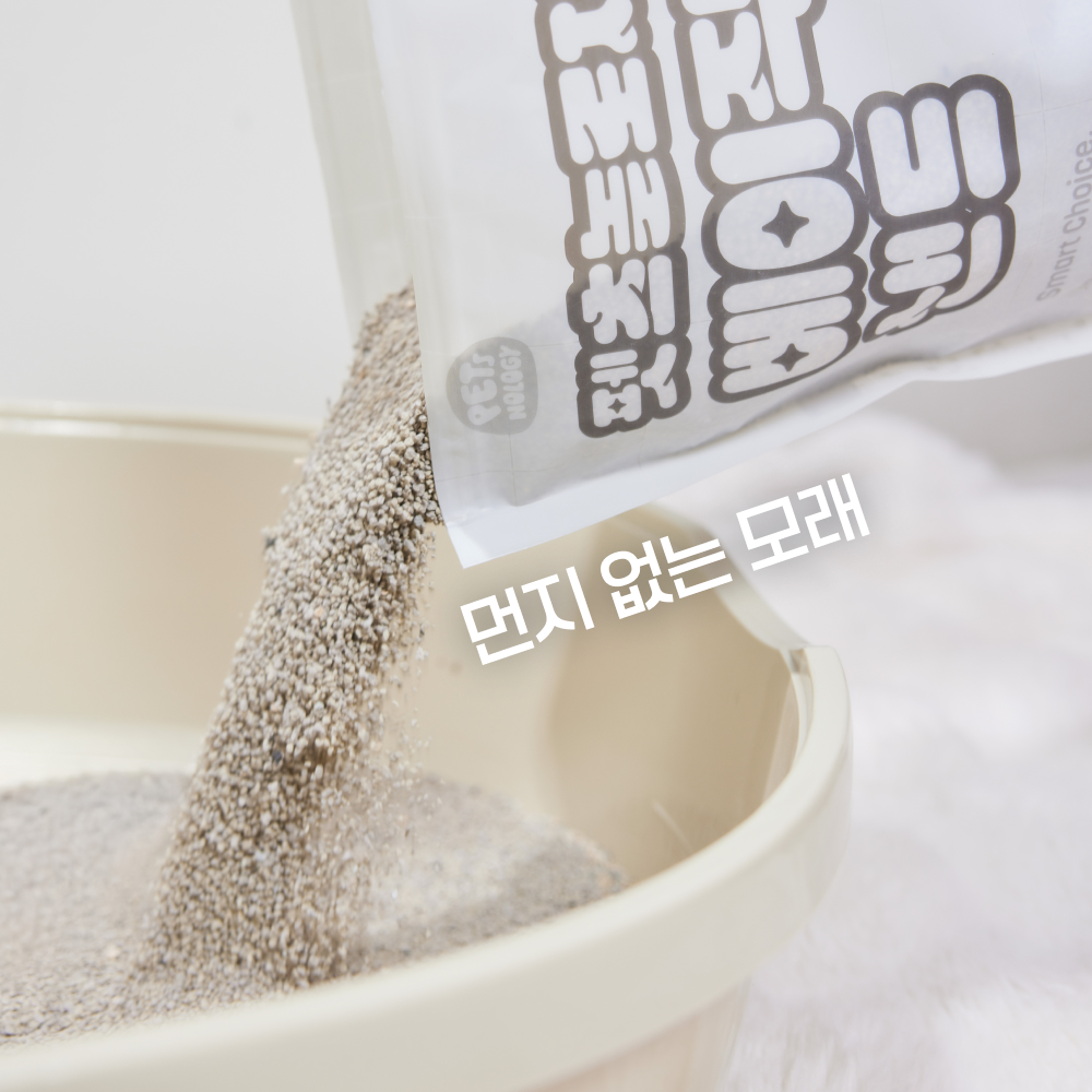 두가지 원물을 과학적으로 배합하여 처음부터 끝까지 완벽한 응고력을 보여주는 실속형 모래에요. 최첨단 집진 공정을 거쳐, 먼지 발생을 최소 수준으로 낮췄어요